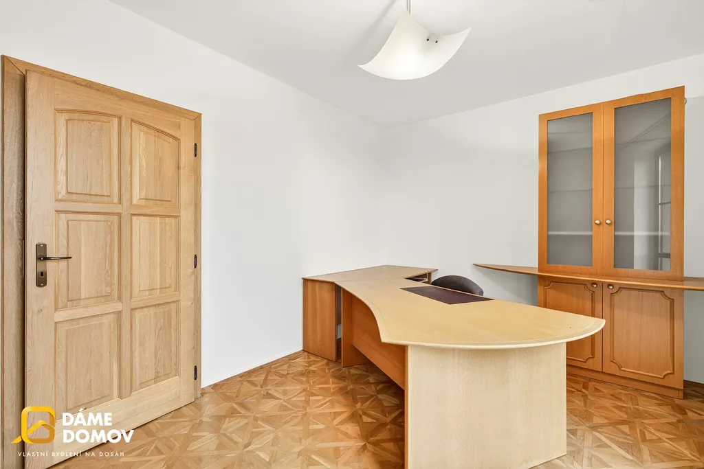 Čtyři prostorné pokoje, chodba a velká koupelna s vanou, sprchovým koutem a samostatným WC – perfektní řešení pro rodinné bydlení.