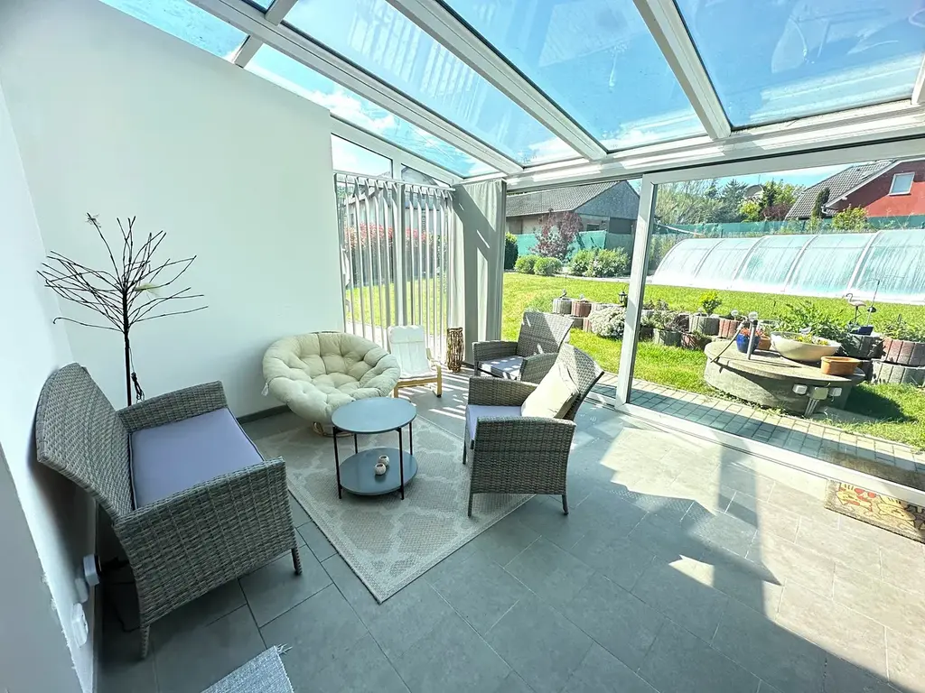 • Prosklená pergola navazující na venkovní pergolu pro grilování