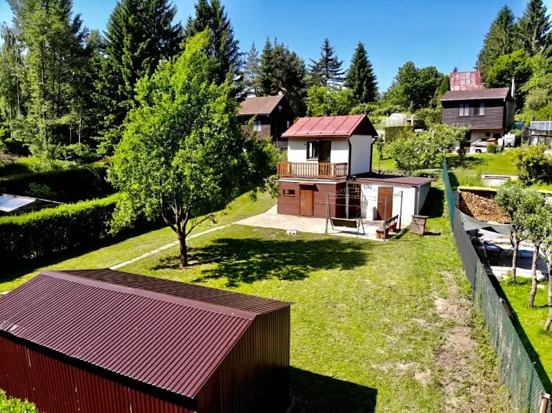 246 Prodej zděné chaty č. ev. 4342 k.ú. Sasov, postavené v údolí řeky Jihlavy v rekreační okrajové části Jihlavy. Přízemí: vstupní veranda, pokoj s kuchyňským koutem, koupelna se sprchovým koutem, umyvadlem a WC, schodiště do patra. 1. patro: ložnice s výstupem na balkon (4,5 m2). Na chatu se zastavěnou plochou 32 m2, užitnou plochou 64 m2 navazuje zděná kolna a nářaďovna o výměře 16 m2, kde je umístěna domácí vodárna a elektrický bojler. Dále na chatu navazuje oplocená zahrada o výměře 482 m2, na které je postavena plechová garáž o výměře 17 m2, kopaná studna a terasa o výměře 42 m. Pozemek celkem 514 m2. Do chaty je zavedena elektřina, užitková voda, topení lokální na TP - krbová kamna, možnost elektřinou, odpady do septiku s přepadem. K chatě je zajištěn přístup a příjezd. Velmi pěkná klidná lokalita, dosah MHD a veškerých služeb.