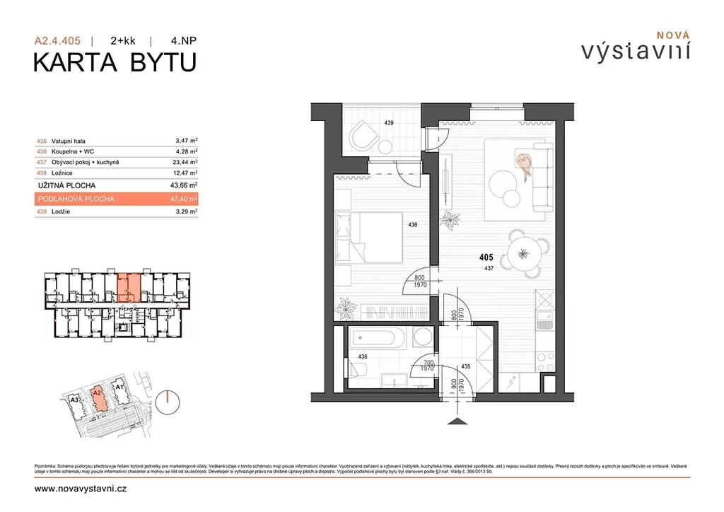 • Dispozice 2+kk s podlahovou plochou 47,4 m2