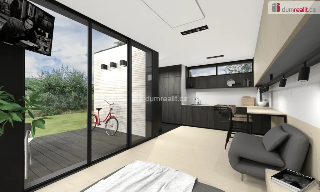 Dumrealit.cz Vám zprostředkuje prodej mobilního domu (36m²). Pokud vlastníte pozemek a chcete bydlet za opravdu nízké náklady, pořiďte si mobilní dům / mobilheim. Náš mobilní dům je zhotovený ze stabilních konstrukčních rámů z tenkostěnné oceli a tyto moduly jsou vhodné pro transport. Je zkonstruovaný tak, aby umožňoval celoroční užívání. Rozměry jsou 6x6m včetně 10m² venkovní terasy. Maximální výška je 2,4m.