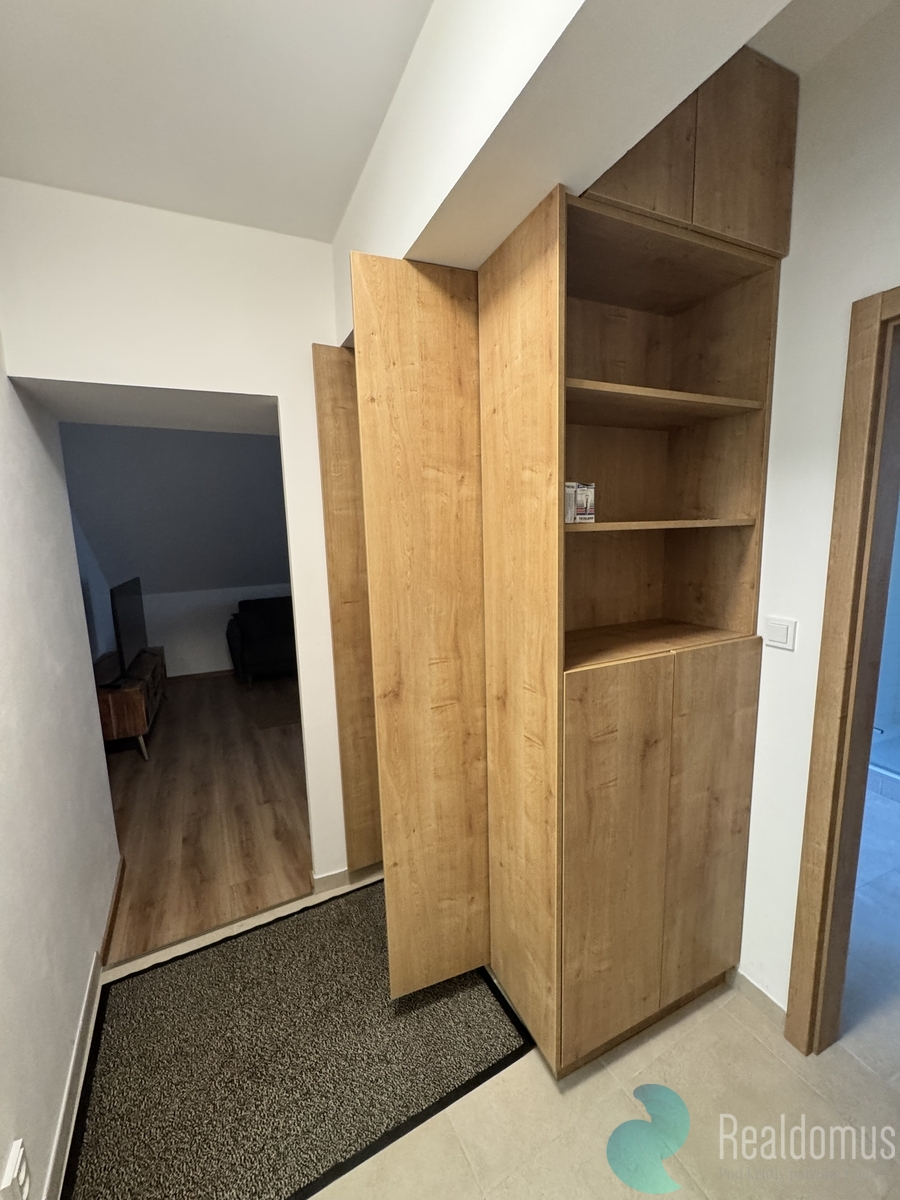 Kuchyně s novou moderní linkou (indukční varná deska, vestavná lednice, myčka), 2x komoda, rozkládací pohovka, manželská postel a další viz foto.