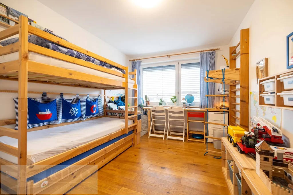 Byt o celkové ploše 128m2, 3+1 disponuje terasou o velikosti 12 m². Velkým bonusem je samostatná jednotka 1+kk o velikosti cca 20 m² s vlastní koupelnou v suterénu se samostatným vstupem, kterou lze případně propojit s dětským pokojem. K bytu dále náleží dva sklepy, společná kolárna a zahrada.