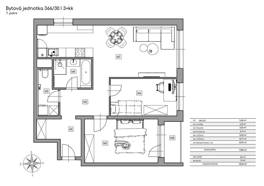 Dispozice bytu 3+kk: