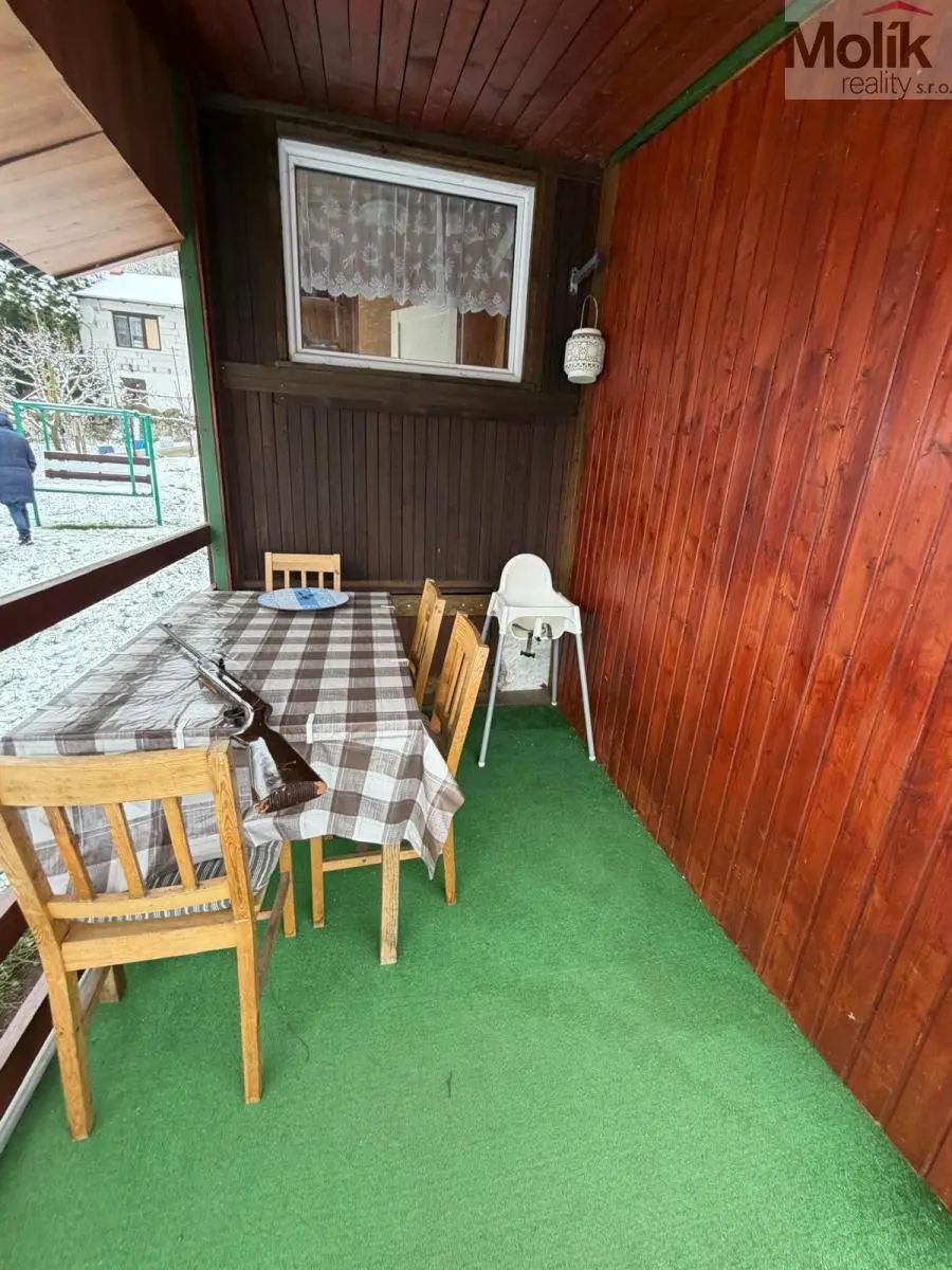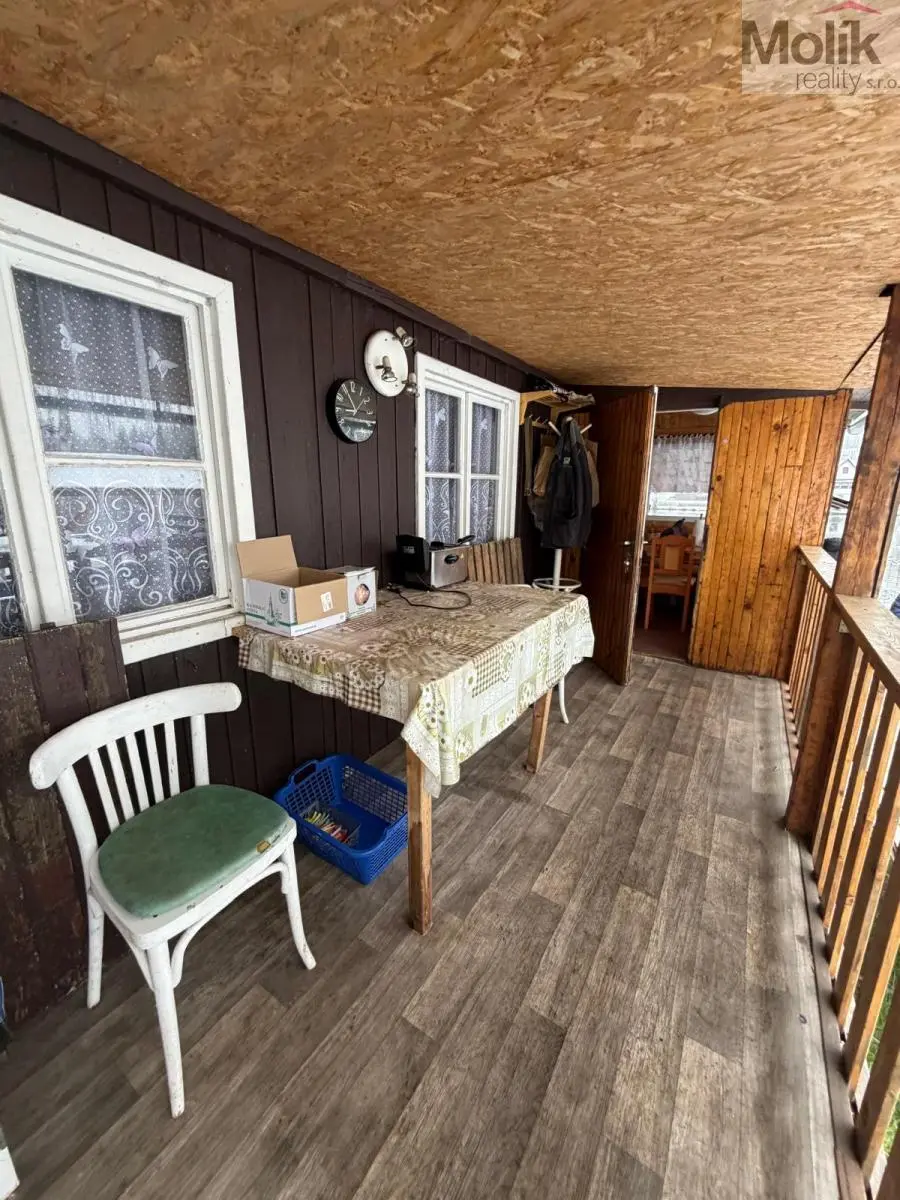 Venku k chatě patří prostorná zastřešená terasa na posezení.