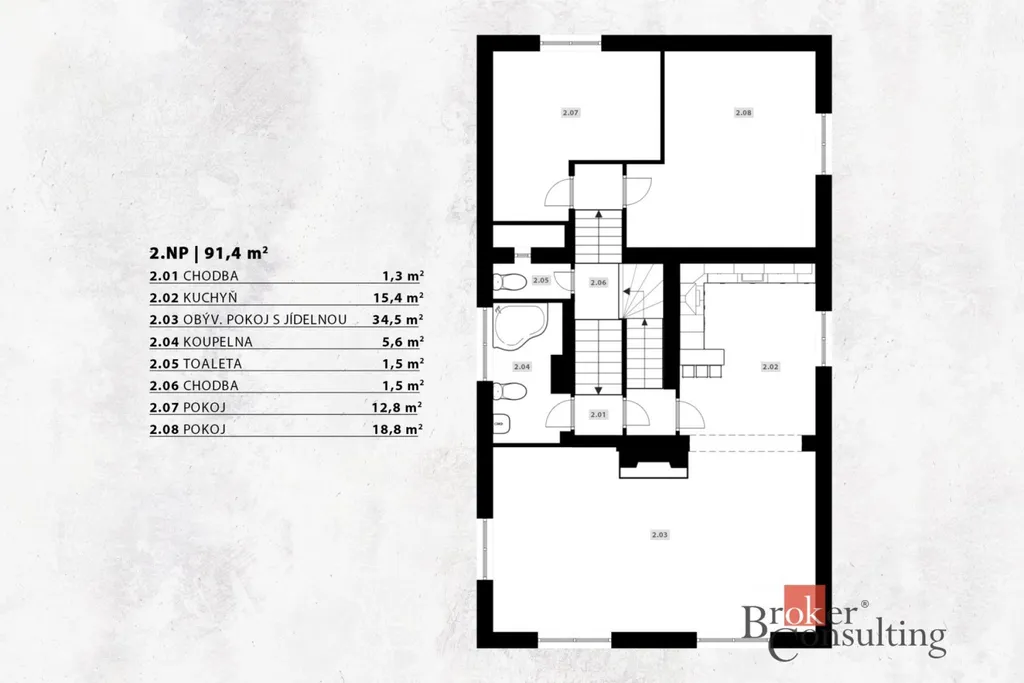 2. patro: další pokoje pro rodinu, hosty či relax