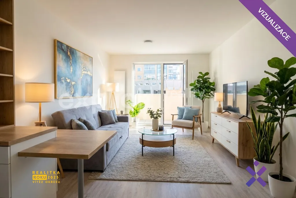 Interiér je řešen velmi prakticky a zároveň moderně. Nabízí prostorný obytný pokoj s kuchyňským koutem, který je chytře dispozičně oddělený tak, aby byla kuchyň přirozeně zónovaná a nenarušovala obytnou část. Kuchyňská linka je vybavena vestavěnou troubou a myčkou, což zajišťuje pohodlné každodenní fungování.