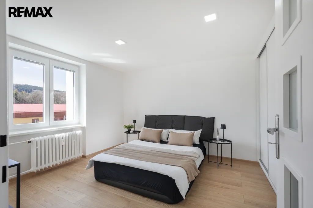 Byt se nachází v oblíbené části Meziboří – v tiché ulici obklopené zelení, za domem sportovní hřiště, velké parkoviště. V docházkové vzdálenosti najdete základní služby (obchody, škola, MHD), obecní úřad.