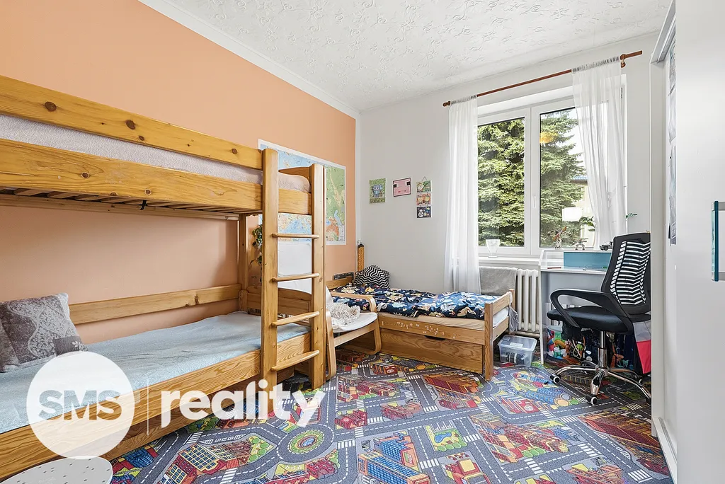Dispozičně byt nabízí tři samostatné pokoje, kuchyň, koupelnu, samostatné WC a vstupní halu. Celkové řešení je velmi praktické a poskytuje dostatek prostoru pro pohodlné bydlení.