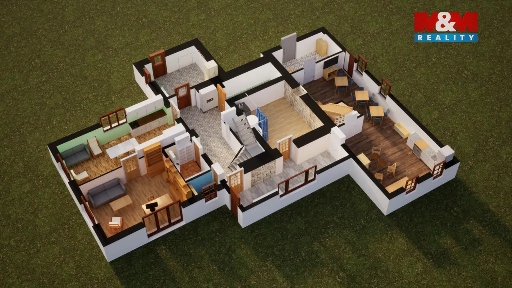 Hlavní část domu tvoří byt 4+kk se samostatným vstupem. Další 3 pokoje (cca 12 lůžek) slouží jako ubytování v soukromí – ideální pro krátkodobé pronájmy bez nutnosti dalších investic.