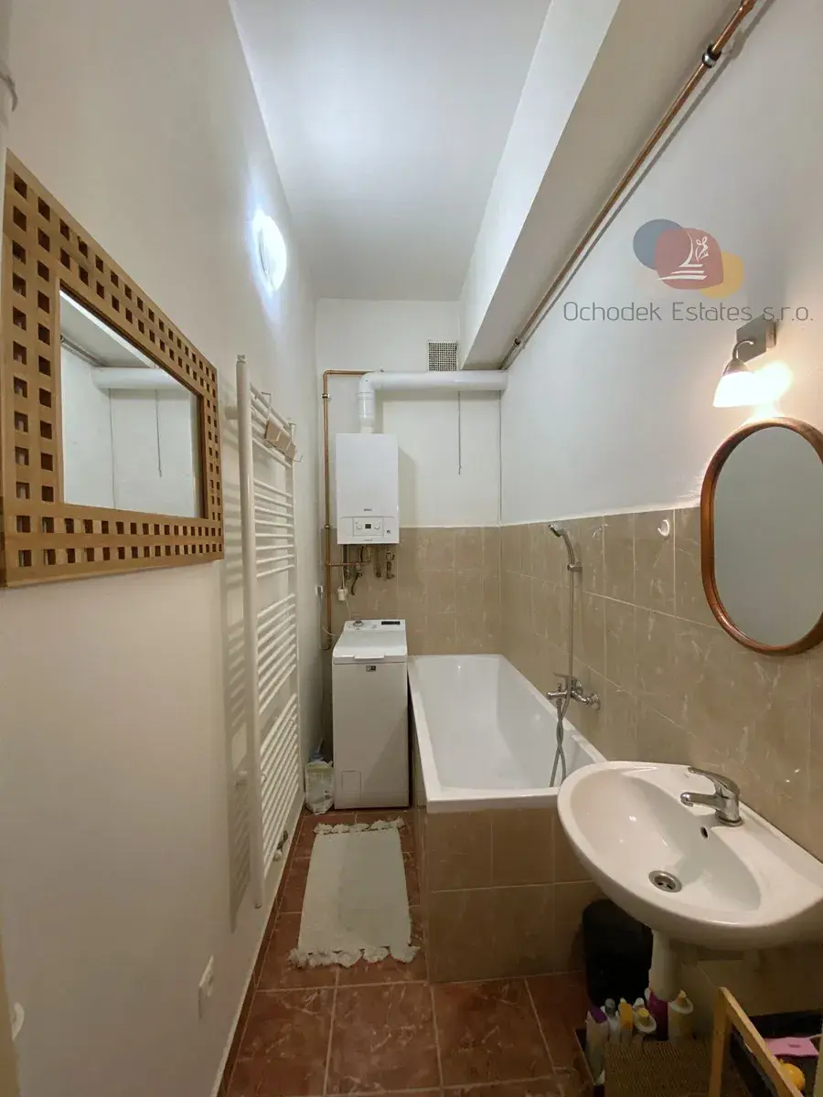 V kuchyni najdete plynový sporák s elektrickou troubou, myčku. Jinak je byt připravený tak, abyste si ho mohl doladit podle sebe. O teplo se stará tepelné čerpadlo, které zároveň řeší i ohřev vody, takže žádné starosti navíc, jen komfort a energetická úspora.
