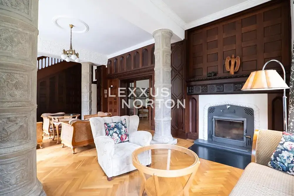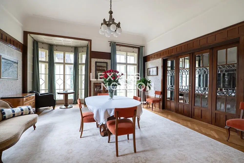 Hlavní vila s užitnou plochou 382 m² a obytnou půdou o velikosti 100 m² byla postavena v neoklasicistním stylu a dodnes si zachovala harmonické proporce, symetrii i cenné architektonické detaily. V letech 2004–2006 prošla kompletní restaurátorskou rekonstrukcí, provedenou s maximálním respektem k původnímu charakteru stavby. Obnoveny byly původní dřevěné obklady, štuky, podlahy i kamenické prvky, díky čemuž vila dnes nabízí autentický historický výraz v kombinaci s komfortem moderního bydlení.