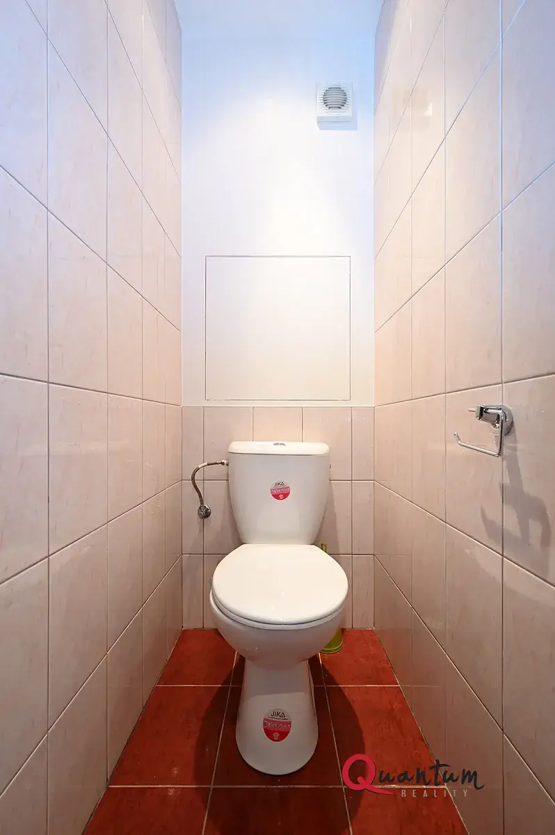 Byt má zděné jádro se sprchovým koutem, toaleta je umístěna samostatně. Byt disponuje plastovými okny, komorou přístupná z obytné místnosti a sklep v suterénu domu.