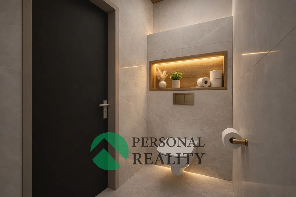 V prvním nadzemním podlaží najdete garáž pro dva vozy, šatnu, pracovnu s vlastní koupelnou, dva samostatné pokoje s terasami, koupelnu a WC.