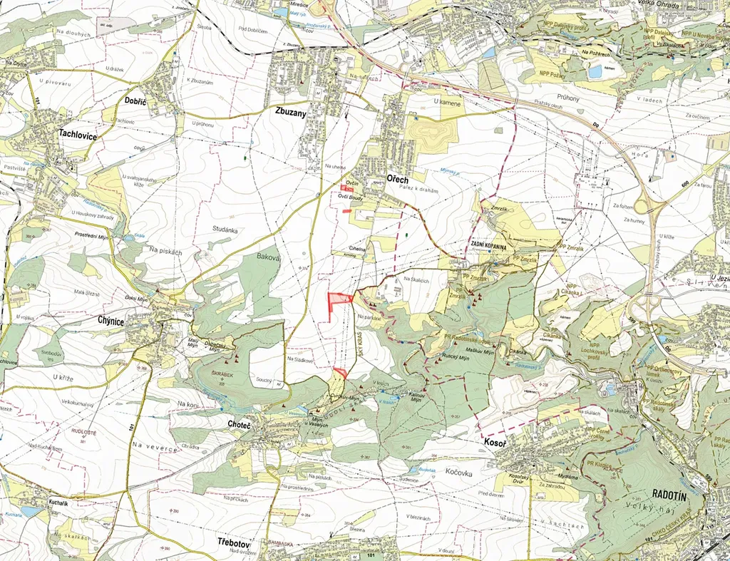 V katastrálním území Ořech nabízím k prodeji zemědělské pozemky ve výlučném vlastnictví, které se nachází v těsné blízkosti hlavního města Prahy.
