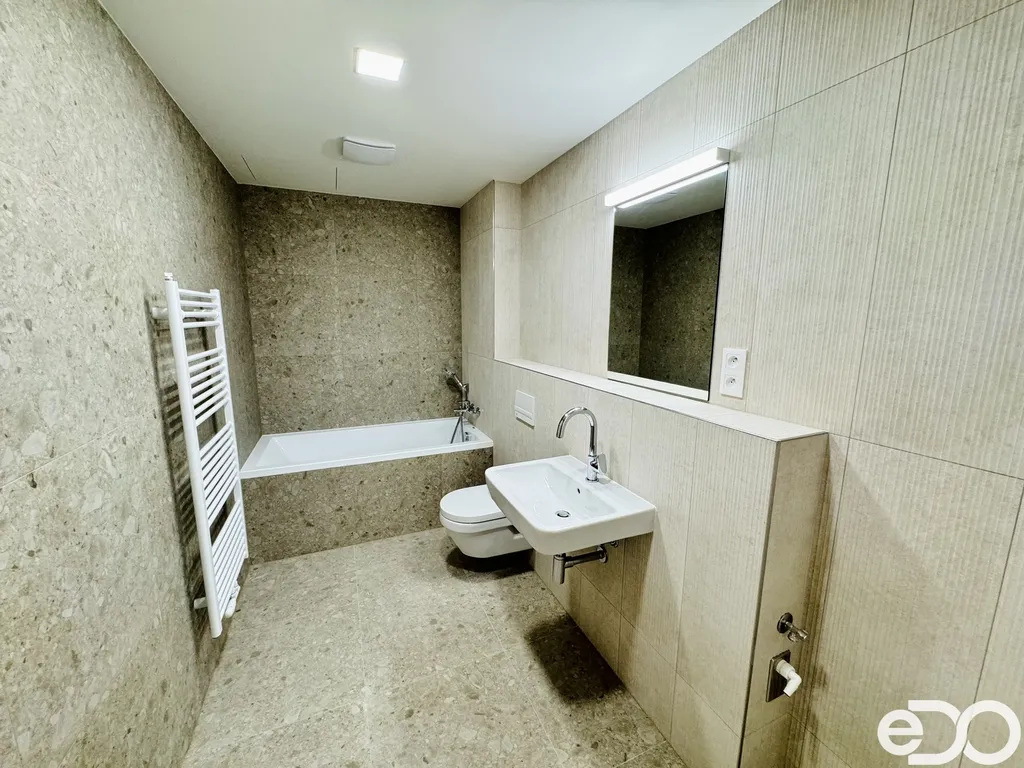 Byt se nachází v cihlové novostavbě a čeká na své první nájemníky. Moderní dispozice nabízí prostorný obývací pokoj s kuchyňským koutem, ložnici, předsíň, koupelnu s vanou a toaletou. Z obývacího pokoje i ložnice je vstup na lodžii o výměře 8,5 m², která poskytuje příjemné místo k relaxaci. Jednotka je orientována na jihovýchodní stranu. Součástí bytu je krásná a moderní kuchyňská linka, která je vybavena veškerými spotřebiči: elektrická trouba, indukční varná deska, digestoř, myčka a lednice s mrazákem. Součástí ložnice je krásná a stylová šatna, v předsíni je vestavěný botník s věšáky. Vytápění je zajištěno tepelným čerpadlem, stejně jako ohřev vody. Okna a dveře k lodžii jsou hliníková, podlaha pak vinyl a keramická dlažba. K bytové jednotce dále náleží zděný sklep (2,7 m²) a garážové stání, které je za příplatek 1 800 Kč měsíčně.