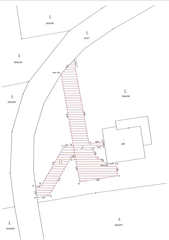 Jedná se o lesní pozemek v rekreační lokalitě Na vyhlídce, obec Slapy, na řece Vltavě, uprostřed pozemku se nachází rodinný dům č. p. 198, který je součástí p. č. st. 235, k. ú. Slapy nad Vltavou (jiný vlastník). Dle Lesního hospodářského plánu se jedná o les hospodářský, převažuje však rekreační funkce lesa nad produkční. Užívání nezbytného okolí rodinného domu č. p. 198 je ošetřeno nájemní smlouvou do 31. 12. 2028. Pozemek je historicky oplocen, přístupný kovovou bránou, uzamčen. V pozemku jsou uloženy inženýrské sítě (vodovod, přípojka NN, jímka), sloužící rodinnému domu Slapy č. p. 198, které nejsou smluvně ošetřeny věcným břemenem, rovněž přístup k výše uvedenému rodinnému domu není smluvně ošetřen, předpoklad vymezení rozsahu věcných břemen viz GP č. 591-108/2022. Obec Slapy nemá schválen nový územní plán, v současné době není pozemek zastavitelný.