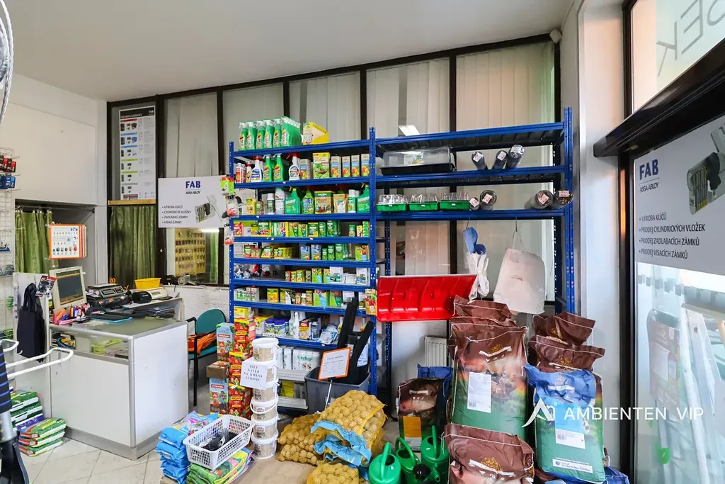 Prodejna se skládá z prostorné obchodní části s výlohou, kanceláře, kuchyňky a sociálního zázemí. Prostor je vytápěný přes vlastní plynový kotel.