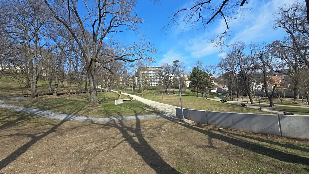 Velký, nově zrekonstruovaný park jen 50 metrů od domu a rychlé spojení do centra.
