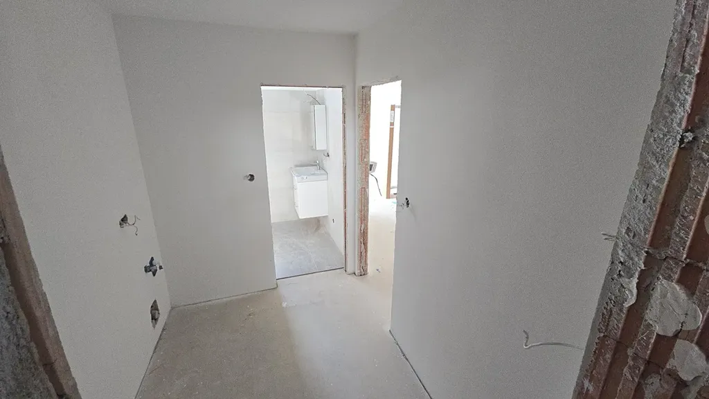 Dispozičně 1+KK, ideální pro jednotlivce nebo na investici. Obývací část s přípravou na kuchyň (dodáváme standardně bez kuchyňské linky) a vstupem na terasu. Předsíňka s prostorem pro pračku a úložné prostory a koupelna se sprchovým koutem.