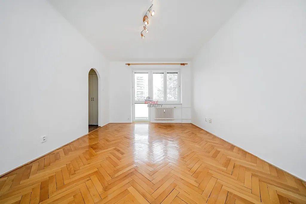Byt je čistě bíle vymalován a je připraven k nastěhování.