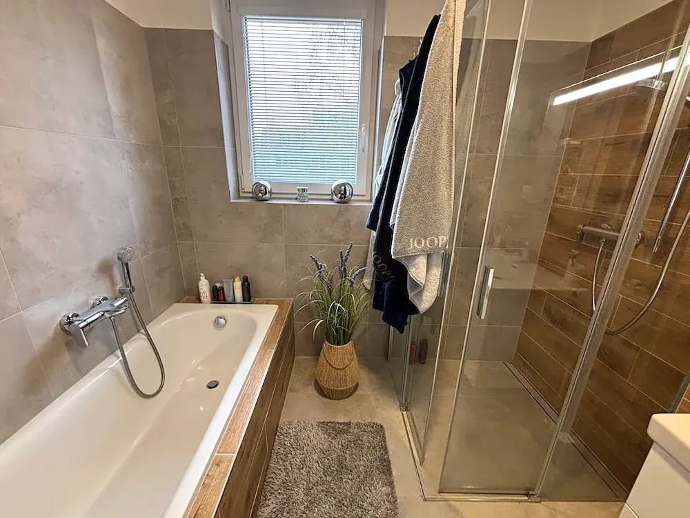2.NP: 3 pokoje, koupelna s vanou a sprchovým koutem, WC s umyvadélkem.