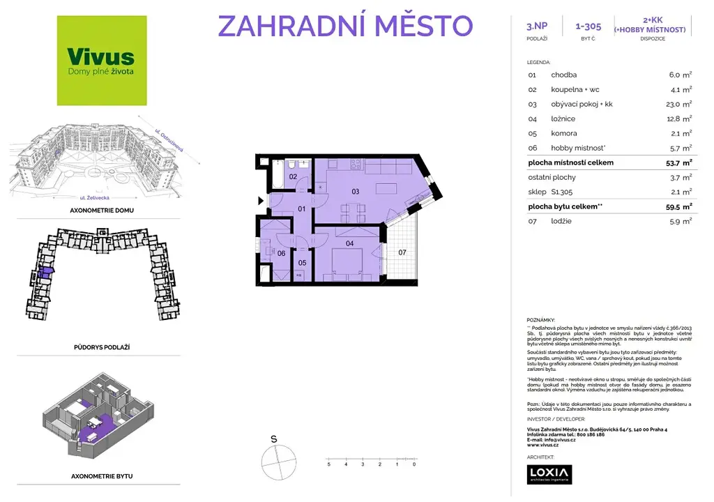 Praktický byt s příjemnou lodžií se nachází v právě budovaném projektu VIVUS ZAHRADNÍ MĚSTO. Ten je situován jen pár minut chůze od vlakové stanice Zahradní Město, ze které je možné dojet za 11 minut do centra Prahy.