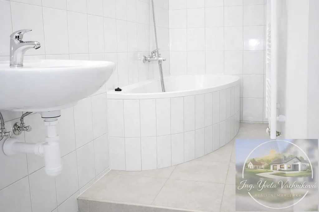 Dispozice: velká kuchyně orientovaná na západ do vnitrobloku, plně vybavená spotřebiči; obývací pokoj a ložnice na východ; samostatné WC s oknem; koupelna s vanou a místem pro pračku i sušičku; centrální místnost vhodná jako jídelna či pracovna.