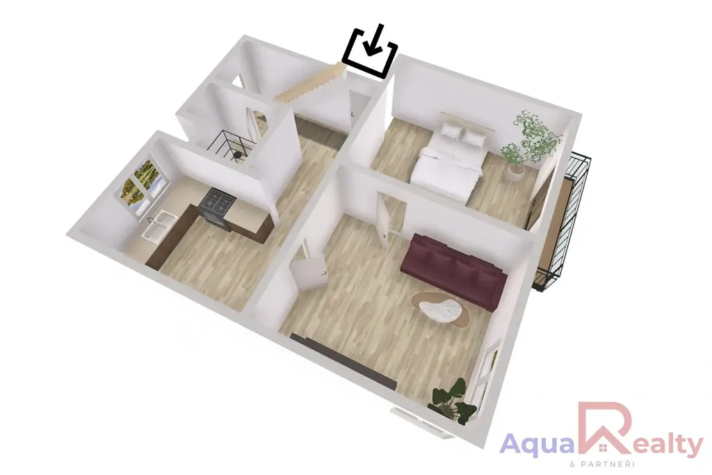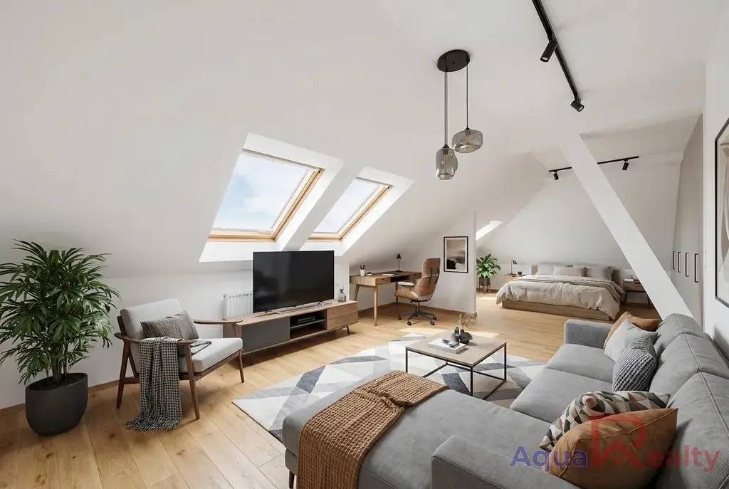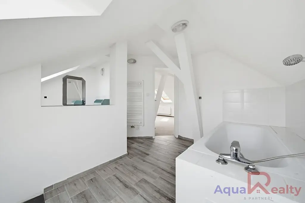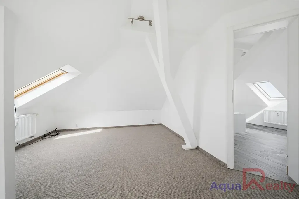 Byt je umístěný ve 3. a 4. podlaží a vznikl propojením klasického bytu s přestavěným podkrovním prostorem. Právě toto řešení vytváří jedinečný charakter nemovitosti a zároveň ponechává další potenciál druhá část půdního prostoru nabízí možnost budoucího odkupu od SVJ a následného rozšíření bytu o další místnosti dle vlastních představ.