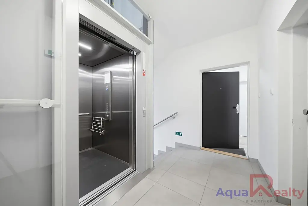 K bytu náleží sklepní kóje a je možné si pronajmout také dvě venkovní parkovací stání. Dům je moderní, dobře udržovaný a nachází se v klidné lokalitě s dostatkem zeleně.