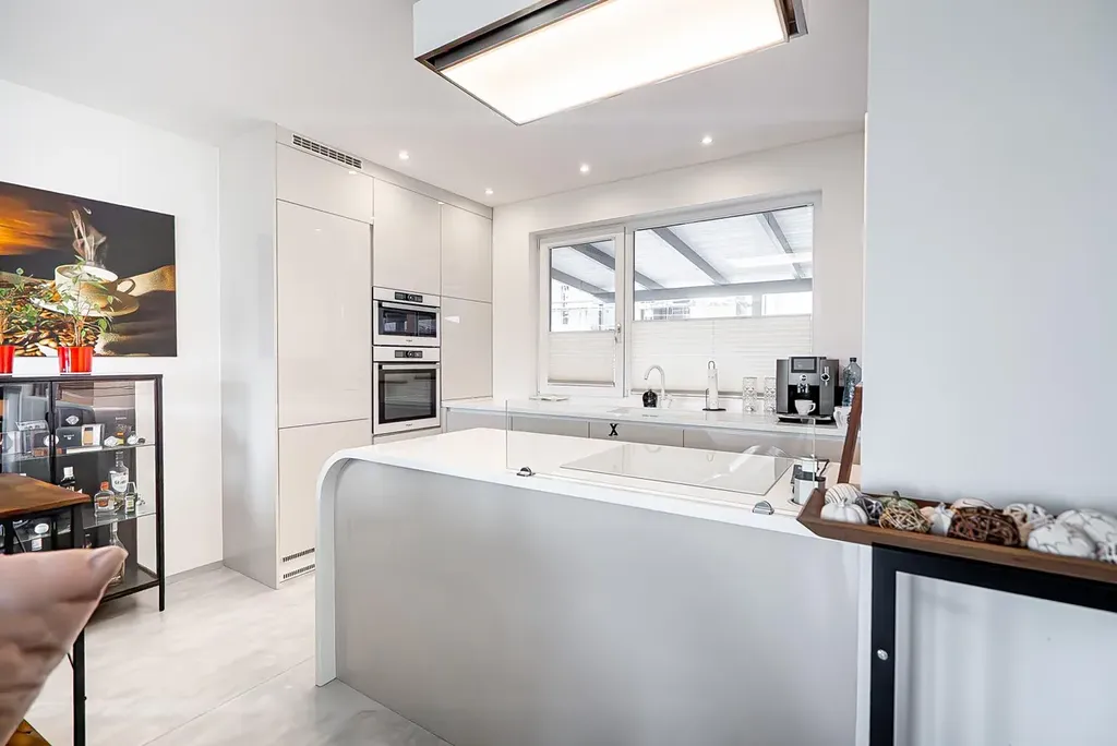 - prostorný obývací pokoj s designovou kuchyňskou linkou a komorou