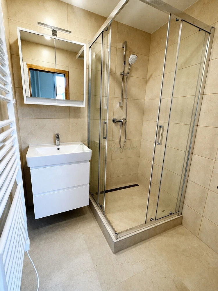 Dispozice nabízí dostatek prostoru jak pro rodinu, tak pro pár, který ocení pohodlí a dostatek soukromí. Zasklená lodžie je ideálním místem pro ranní kávu i večerní odpočinek.