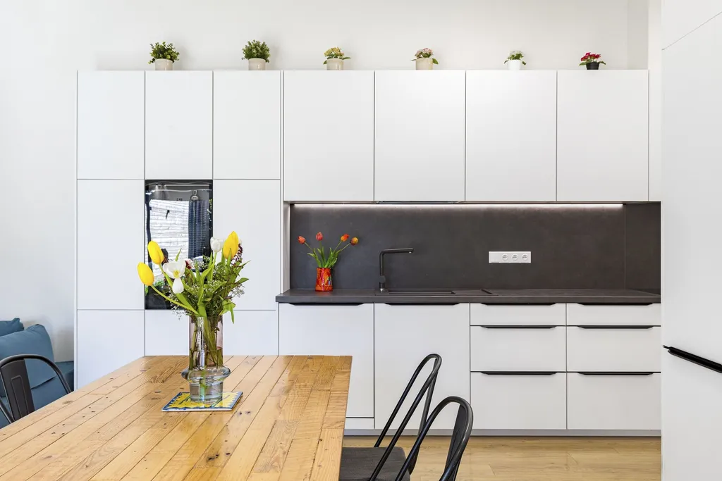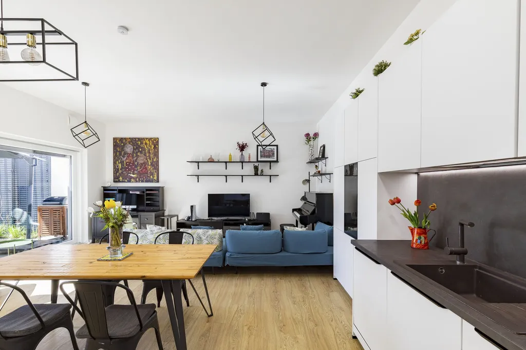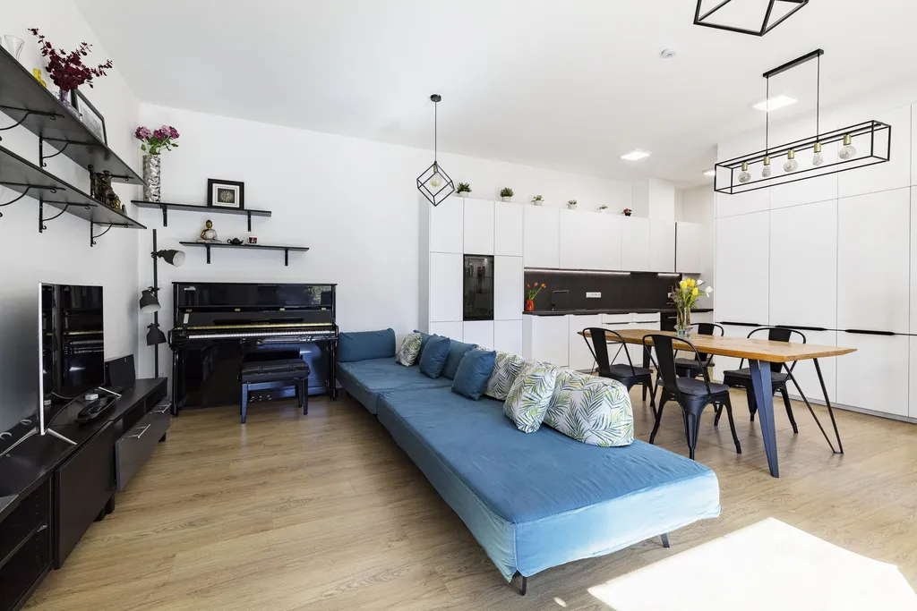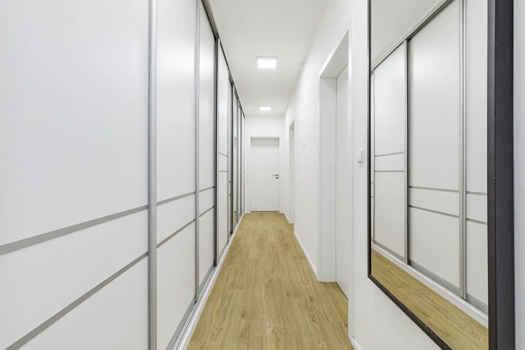 V domě se nachází 3× ložnice. Součástí domu je 1× sprchový kout, 1× vana a celkem 2× WC. Kuchyně je vyrobena na míru a je vybavená myčkou, moderní troubou, mikrovlnnou troubou, lednicí, digestoří a prostornou indukční deskou. Kuchyně má k dispozici mnoho úložných prostorů a je propojená s obývacím pokojem. Velkou výhodou domu je variabilita – ze všech pokojů je možné vstoupit na novou zahradu. Nádherná zahrada je kompletně vybavená sezením i grilem. Pravé křídlo domu, ve kterém se nachází tři ložnice, propojuje dominantní chodba, ve které je prostorná a moderní šestimetrová skříň s úložnými prostory.