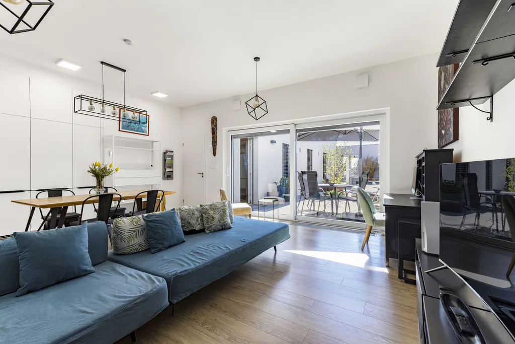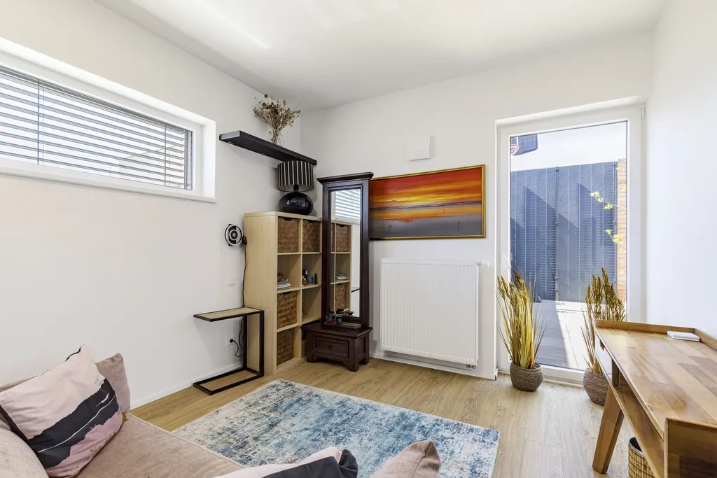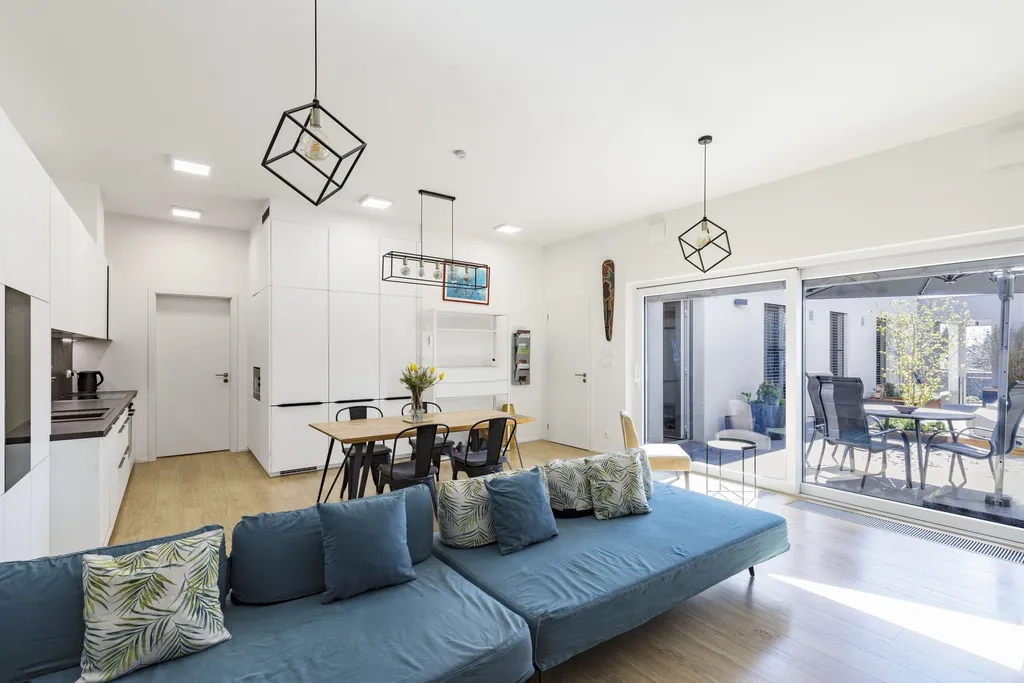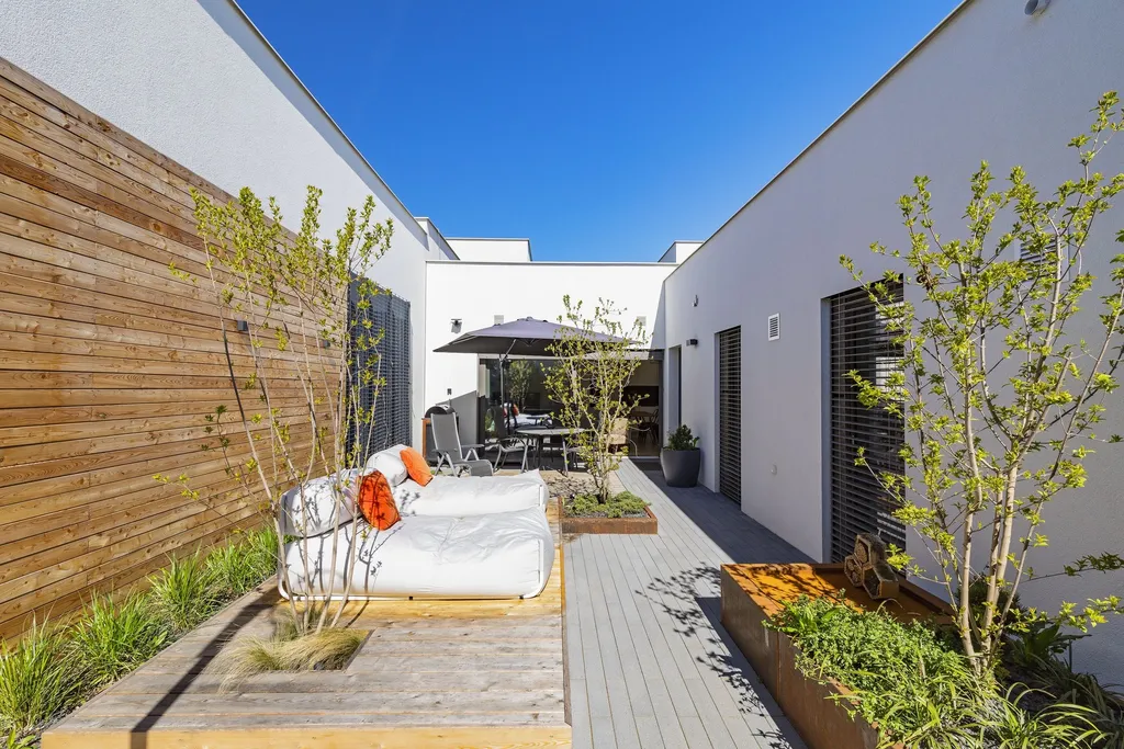 Ve všech pokojích v domě je filtrační rekuperace. V koupelnách jsou nové skříňky pod umyvadlo s úložnými prostory. Dům je vhodný pro rodiny s dětmi i zahraniční klientelu. V domě je také technická místnost, součástí nájmu je i pračka a sušička. Dům je možné si pronajmout nezařízený, nebo po dohodě s majitelkou ponechat část vybavení. Dům je k dispozici od 1. 7. 2026. Venkovní terasa je kompletně zařízená a veškeré vybavení je součástí nájemného.