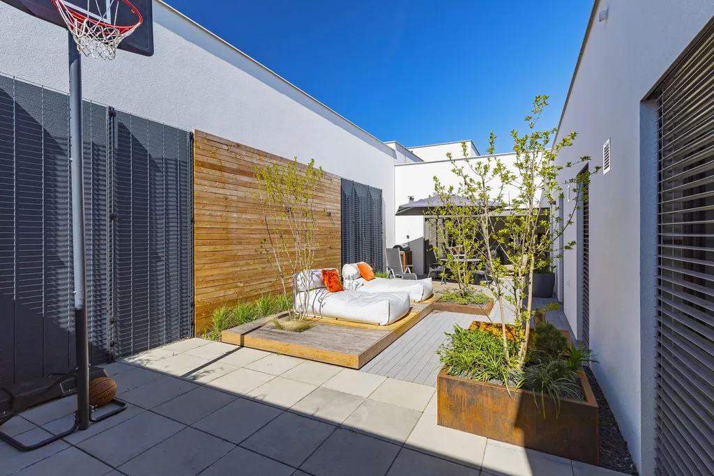 Nový jednopodlažní dům o dispozici 4+kk (127 m²) + 56 m² terasa + 11 m² venkovní sklad, vstupní portál 5 m² a dvě parkovací stání před domem.