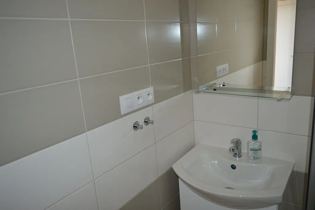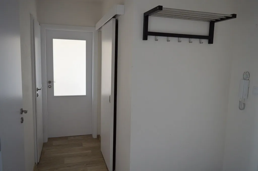 Předsíň, koupelna, podlahy a kuchyňská linka jsou v moderním designu. Výhledová okna jsou plastová se žaluziemi a jsou orientována na východ až jihovýchod. Ohřev teplé vody je pomocí el. bojleru, vytápění je centrální, dálkové. Přípojky Internetu a kabelové TV jsou aktivní. Součástí vybavení bytu jsou kuchyňská linka a el. sporák.
