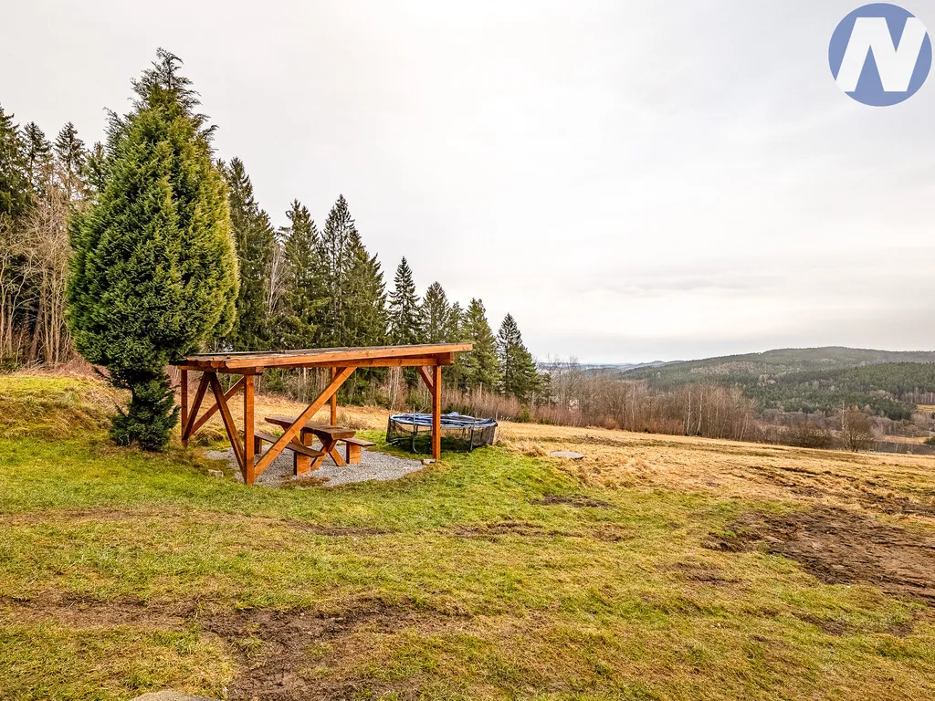 Nabízím ke koupi dům na Šumavě s 2 bytovými jednotkami (235 m2) na pozemku o rozloze 17.480 m2, v obci Zdíkov, části Račov, 9 km od skiarálu Zadov. Dům se nachází v nadmořské výšce 745 m n.m., uprostřed luk a lesů, s krásným výhledem do šumavské krajiny. Nabízený dvoupodlažní rodinný dům o zastavěné ploše 219 m2 slouží momentálně jako velmi vyhledávané rekreační ubytovací zařízení s kapacitou ubytování 16 osob. V zaběhlém pronajímání je možné pokračovat, správa zajištěna. Každé patro má svůj vchod a terasu. V přízemí je byt o velikosti 3+kk (76 m2) a v patře 5+kk (136 m2) + terasa (23 m2). V domě je také garáž (28 m2).Vytápění objektu včetně vody je řešeno tepleným čerpadlem umístěným ve vrtu. Na zahradě se nachází přístřešek s posezením, terasa a parkovací stání pro 4 vozidla. Stavbu rodinného domu je možné stavebně rozšířit až o 80 m2. Doporučuji prohlídku. Více informací u makléřky.