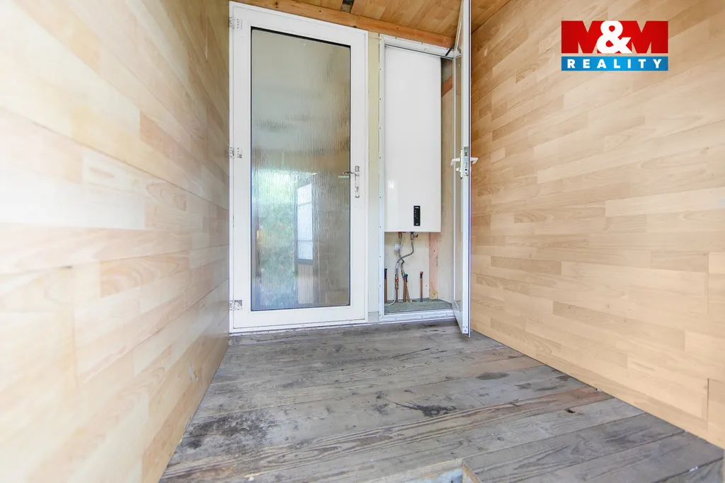 Na pozemku se nacházejí dva zahradní domky (mobilheimy) a praktická kůlna na nářadí. Jeden z mobilheimů je vytápěn kotlem na tuhá paliva a je napojen na elektřinu. Voda je zajištěna z vlastní studny, její ohřev obstarává bojler. Odpady jsou svedeny do septiku.