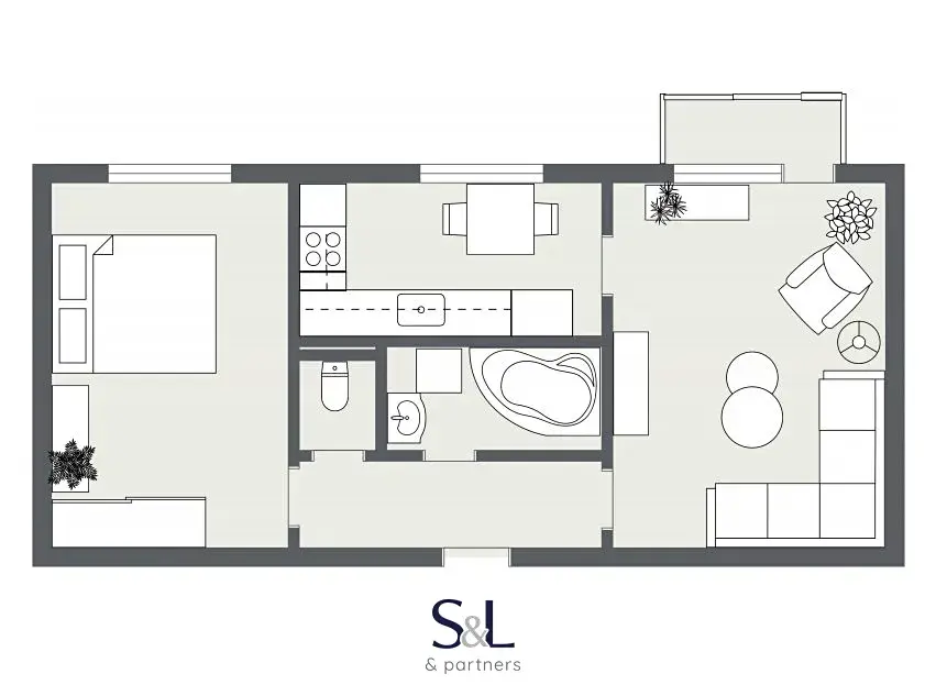 Bytová jednotka se nachází v udržovaném domě a její dispozice zahrnuje: