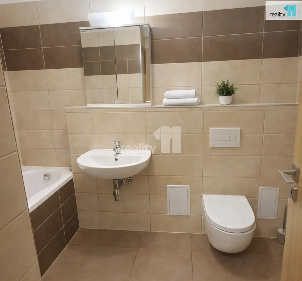 V bytě se nachází prostorná koupelna s vanou, WC, přípojka na pračku.
