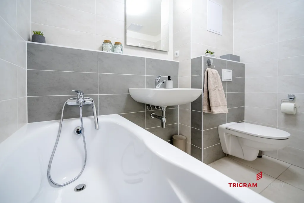 K dispozici je dále elegantní koupelna s vanou a toaletou a praktická komora pro pohodlné uložení věcí.