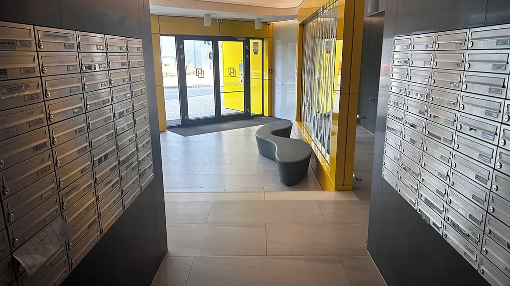 Budova, ve které se apartmán nachází, je ve velmi dobrém stavu - novostavba a nabízí vysokou úroveň bezpečnosti a komfortu s recepcí u vchodu.