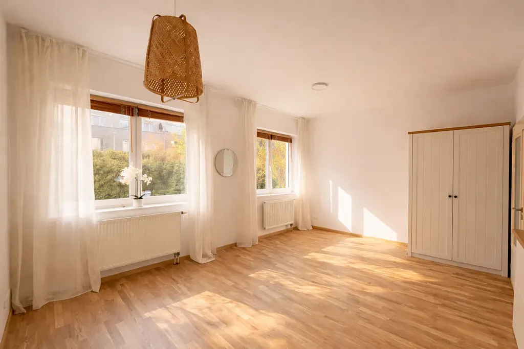 Dispozice bytu tvoří světlý a prostorný pokoj s kuchyňským koutem a šatní skříní. Byt prošel čerstvou renovací – má novou dřevěnou podlahu, kompletní výmalbu, kotel po servisní kontrole a nové osvětlení.