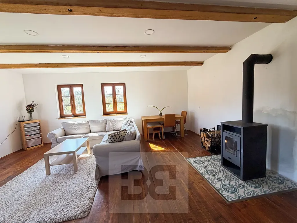Útulná kamna na tuhá paliva (včetně zásoby na celou zimu v ceně) v hlavní obytné místnosti s přehledem vytopí celý prostor přízemí i prvního patra a dodají prostoru jedinečnou atmosféru. Pokud Vám i přesto bude zima, je možnost komfortního přitápění elektrokotlem.