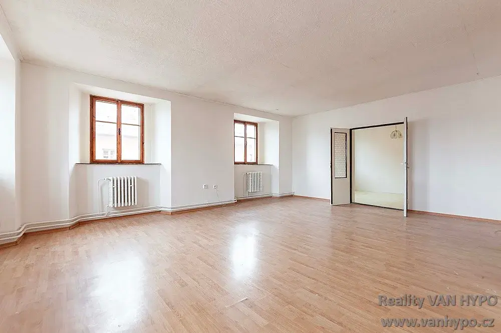 Elegantní a prostorný byt 3+1 ve 3. NP s balkónem v udržovaném činžovním domě v samotném centru města Žatce s krásným výhledem na náměstí Svobody.
