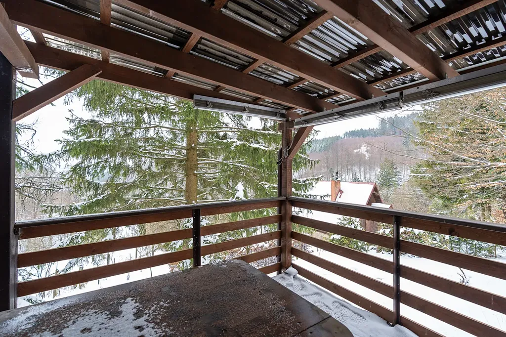 Vytápění je zajištěno krbem, který nabízí tradiční a efektivní způsob vytápění s příjemnou atmosférou. Ohřev vody zajišťuje elektrický bojler. Chata je napojena na inženýrské sítě, kanalizace je řešena trativodem.