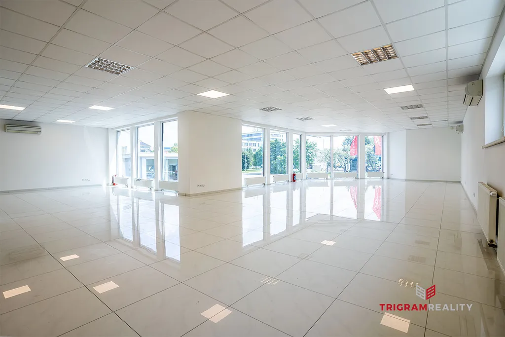 - Světlý open-space s prosklenými výlohami.