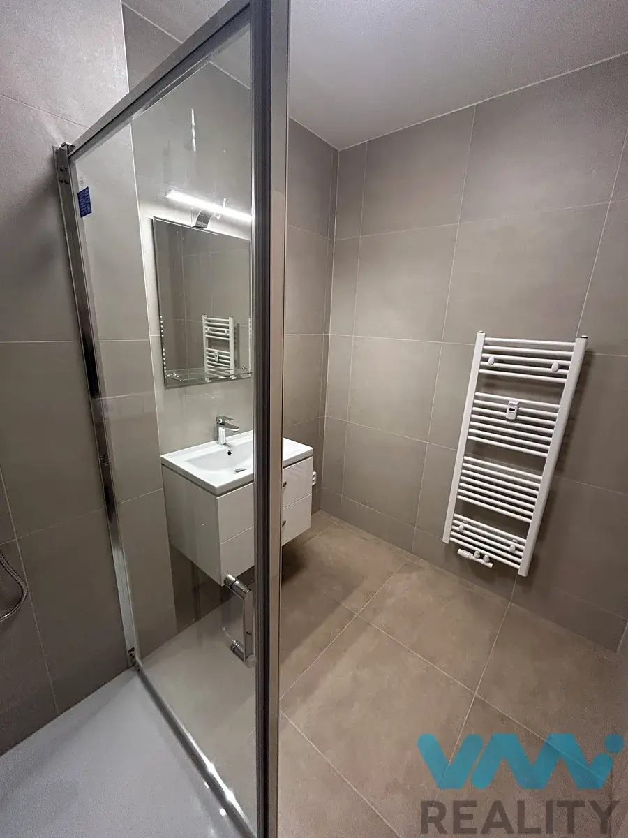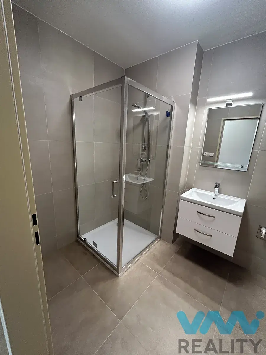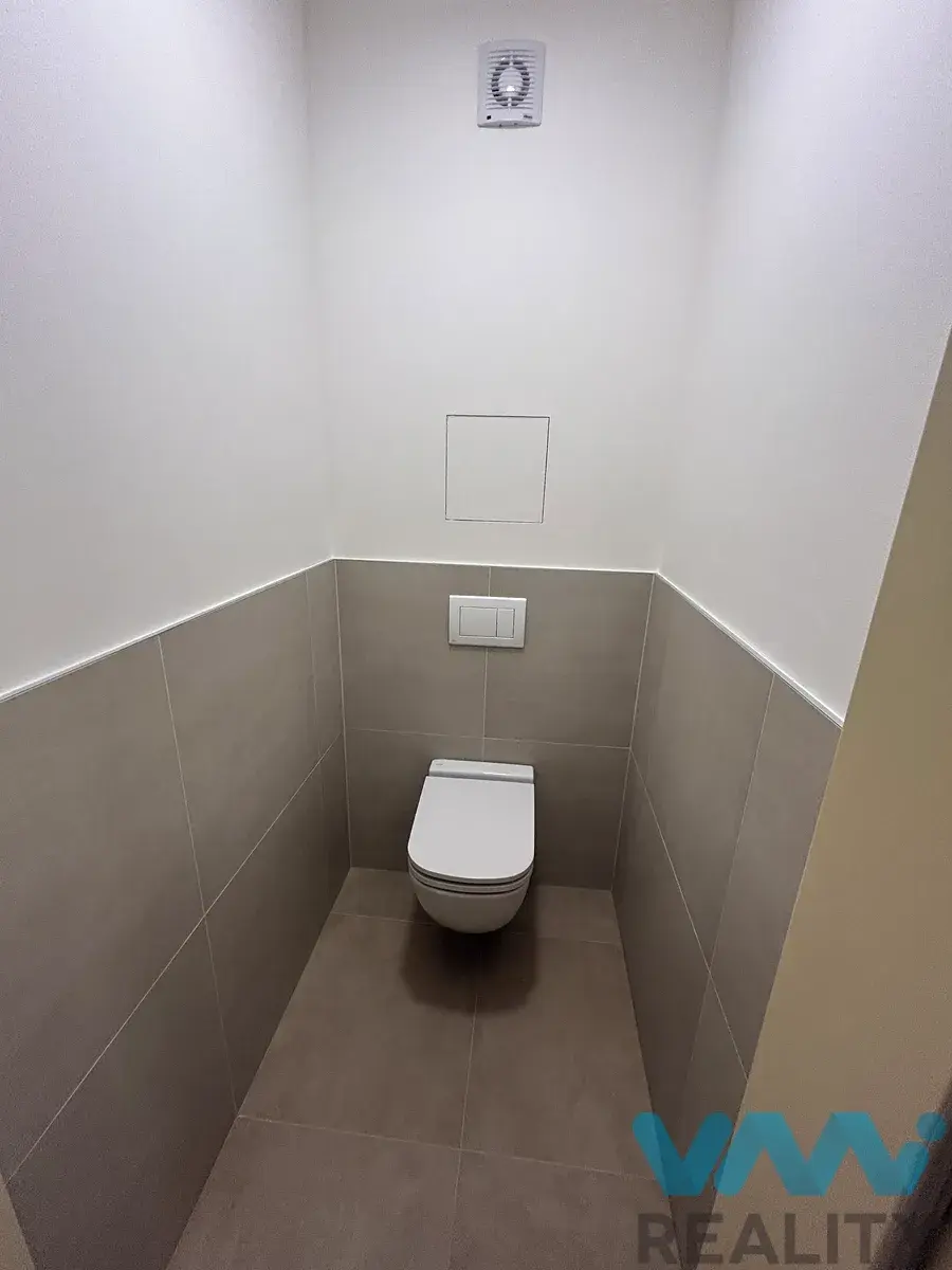 Kuchyň je vybavená linkou včetně vestavěných spotřebičů (myčka, sklokeramická deska, elektrická trouba, digestoř, bez lednice). Koupelna a toaleta jsou samostatné, v koupelně je sprchový kout a umyvadlo se skříňkou.