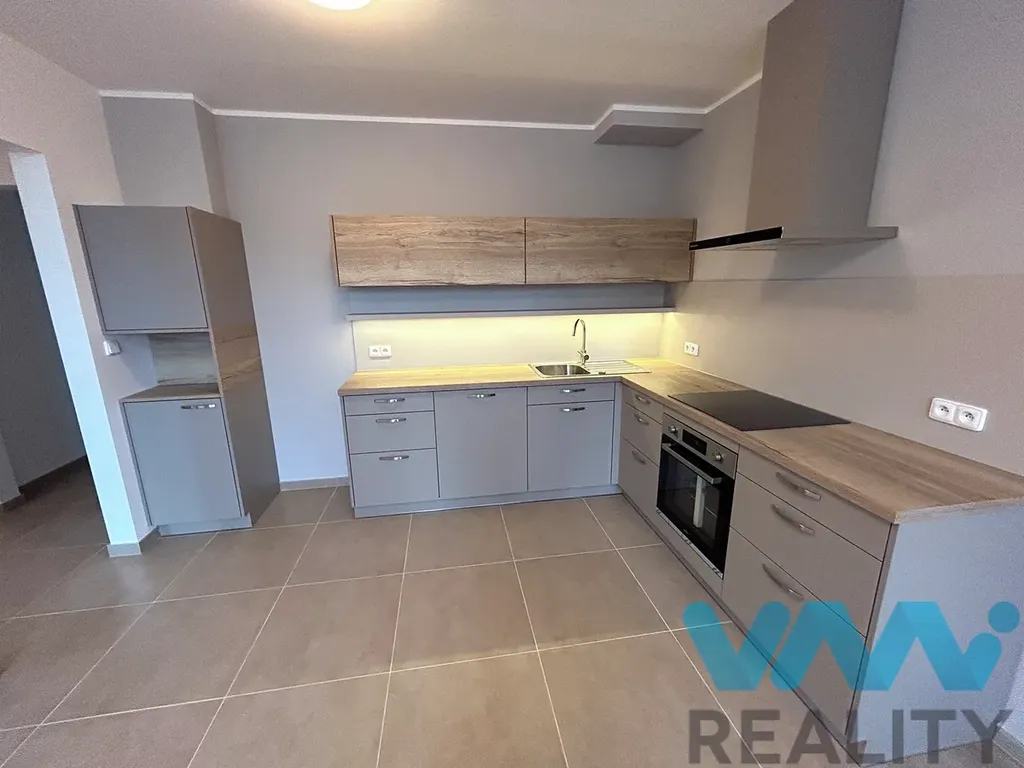 Kuchyň je spojená s obývacím pokojem, další dva pokoje jsou samostatné. Byt má samostatnou komoru/šatnu. Kuchyň je vybavená linkou včetně vestavěných spotřebičů (myčka, sklokeramická deska, elektrická trouba, digestoř, bez lednice). Koupelna a toaleta jsou samostatné, v koupelně je sprchový kout a umyvadlo se skříňkou.
