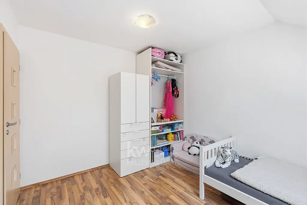V přízemí Vás čeká vstupní chodba, koupelna se sprchovým koutem a toaletou, technická místnost / šatna a hlavní obytný prostor s kuchyňským koutem, jídelní částí a přímým vstupem na terasu a do zahrady. Právě tato část domu tvoří přirozené centrum každodenního života. V patře jsou tři samostatné pokoje, z jednoho je vstup na balkon, dále hlavní koupelna s vanou, toaletou a dvěma umyvadly. Velkým bonusem je také pochozí půda, která nabídne vítaný úložný prostor.